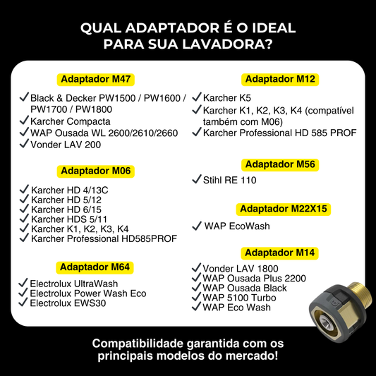 Pistola de Alta Pressão Preta c/ Engate Rápido e 4 bicos para jato de água com Adaptador Lavadora