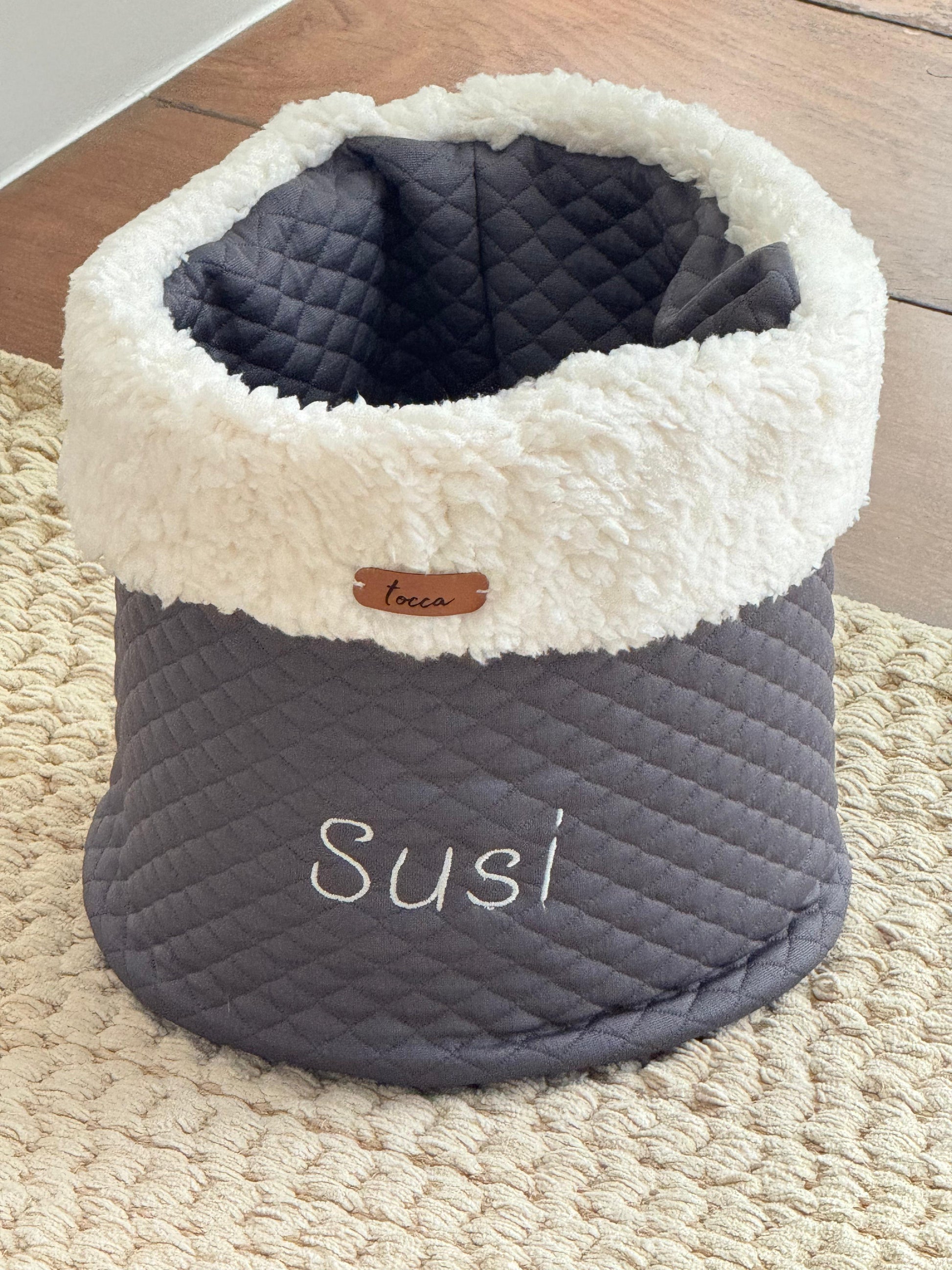 Optar pela Tocca significa investir em momentos de prazer e satisfação para seu amigo de quatro patas. Nosso Cesto Pet Personalizado é um verdadeiro convite para que ele desfrute de um espaço organizado e acolhedor, apoiado na superfície macia e fácil de limpar do matelassê que escolhemos com o máximo cuidado.